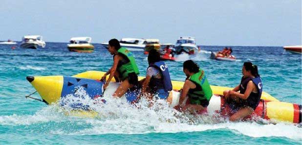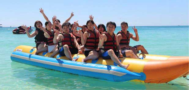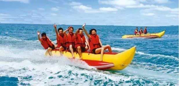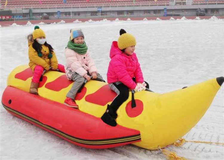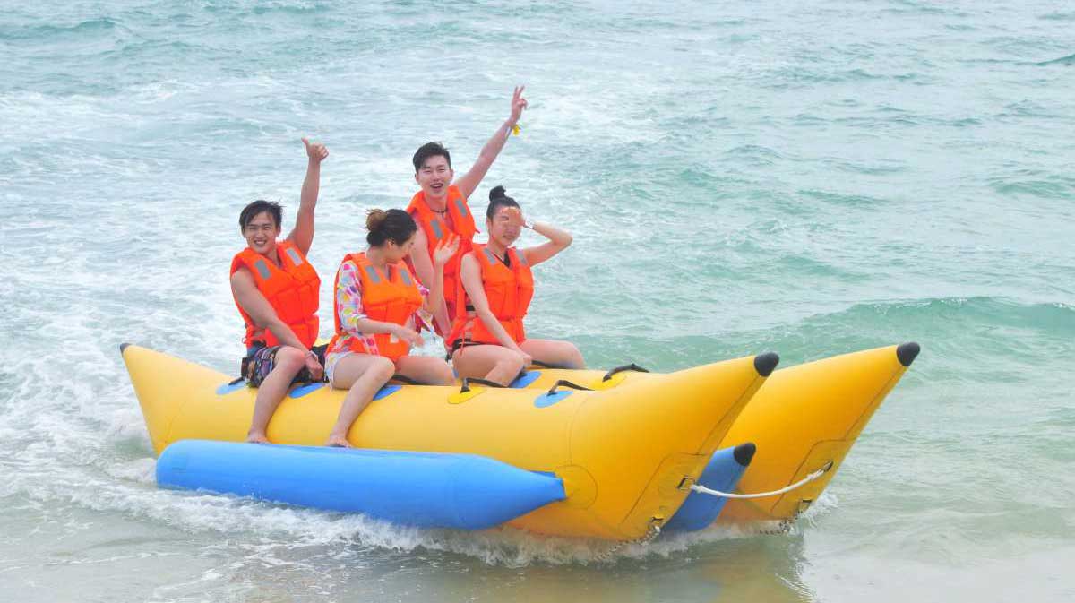 香蕉船上海馳童游樂生產的一款新型產品,常附帶氣泵,用作江河漂流全地形穿越,材料采用較厚的PVC夾網料雙層結構,可以有效分解充氣產品的功能。